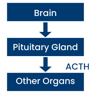 Hipofiza je smještena na bazi mozga te proizvodi hormone, npr. ACTH, kao odgovor na moždane signale.